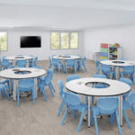 En nuestra página web, encontrarás diferentes modelos de mesas para aulas colaborativas y tradicionales, que puedes combinar con esta. Como por ejemplo: