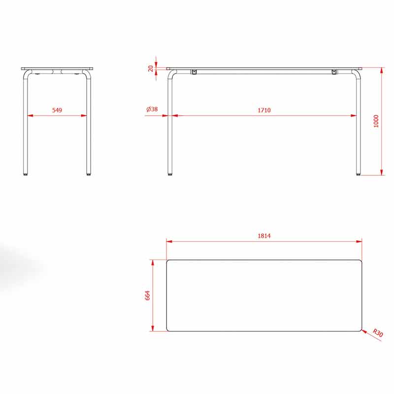 - Tablero en MDF de 22m con cantos redondeados color negro.