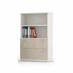 Armario metálico serie NET.0112, dos archivos bajos con frentes de madera, con cerradura, indicado para archivo y guardar material en las secretarias de los colegios, institutos. Así como oficinas, despachos, o cualquier zona de archivo.