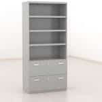 Armario metálico serie NET.0116, cuerpo y estantes fabricados en chapa de acero de 0.8mm, pulida y laminada en frío. . Estructura monobloque de una sola pieza soldada y pintada en polvo epoxy secado al horno. Parte baja con dos cajones archivo de melamina con cantos de 2mm. de ABS , para carpetas colgantes.