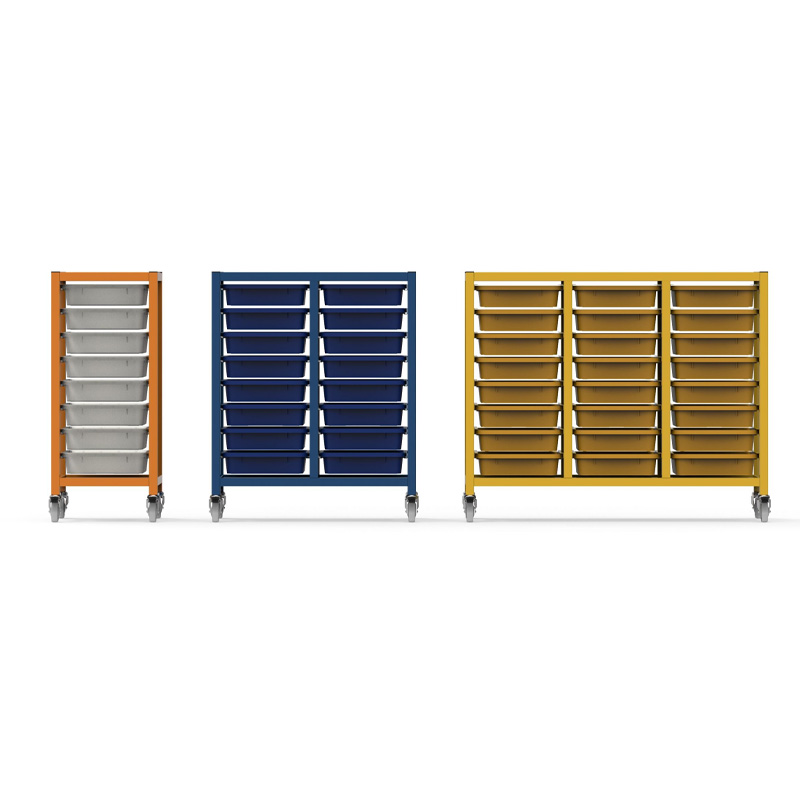 Carro metálico 2 columnas con bandejas, forma parte de nuestro catálogo de mobiliario escolar técnico. El cual, es ideal para equipar laboratorios, al igual que aulas tradicionales y otras aulas.