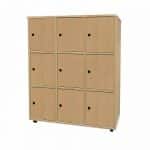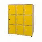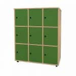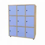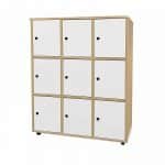 Este modelo de taquilla escolar melamina 9 puertas, está indicado para clases de Primaria, ya que al ser una taquilla escolar de melamina, y por su altura de 112 cm, es apropiada para esta etapa escolar.