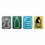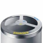 - Tapa de acero inoxidable con logo y texto para cada tipo de residuo.