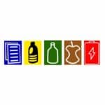 - 5 tipos de residuos: Papel y cartón (Azul), Plástico (Amarillo), Orgánico (Marrón), Vidrio (Verde), Rojo (Residuos peligrosos).