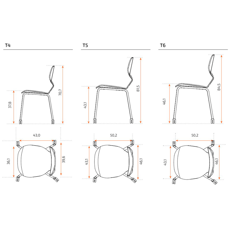 - Talla 5 – 46cm ancho x 50cm fondo x 81cm altura. Altura del asiento 43 cm.