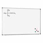 Pizarra blanca vitrificada para rotulador, para pared con superficie de escritura de acero vitrificado e3 Ceramicsteel para rotuladores de borrado en seco y también para todo tipo de aplicaciones magnéticas. Marco de aluminio anodizado plata mate y esquinas con cantoneras decorativas