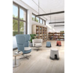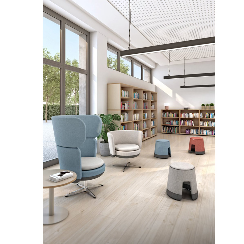 Taburete pop escolar modular, diseñado para crear espacios de descanso e interacción en centros educativos. Ideal para el aula del futuro, recepciones, universidades o bibliotecas.