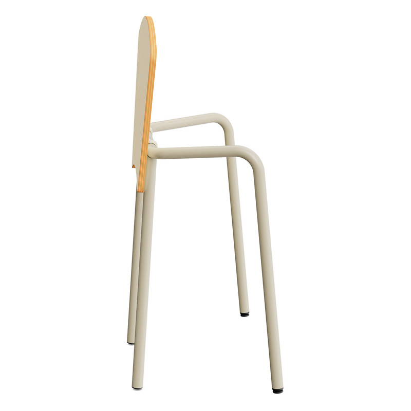 - Estructura tubular metálica de Ø35 mm pintada en Warm Gray epoxi-poliéster, con pequeñas ruedas y taco nivelador.
