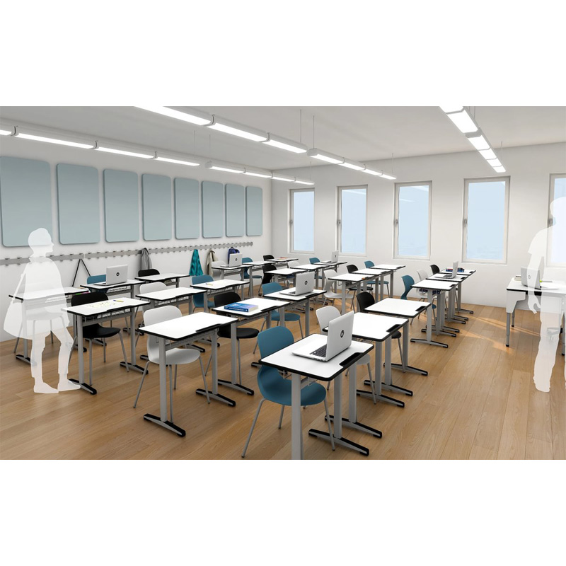 En nuestra página web, encontrarás diferentes modelos de mesas para aulas colaborativas y tradicionales, que puedes combinar con esta. Como por ejemplo: