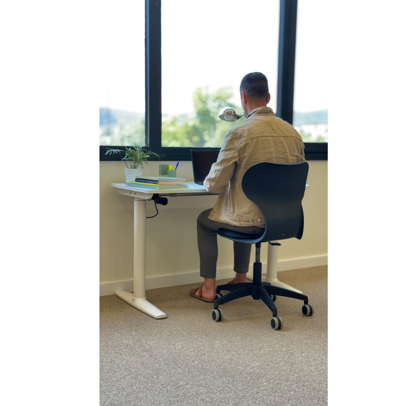- Base giratoria y regulable en altura con pistón de gas, forma de estrella con 5 ruedas.