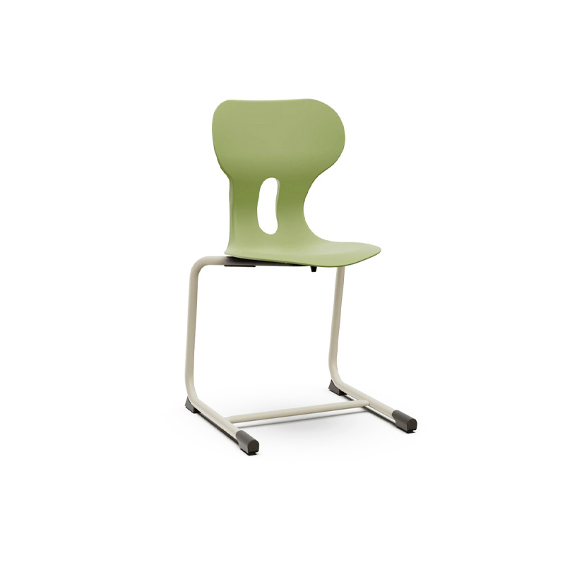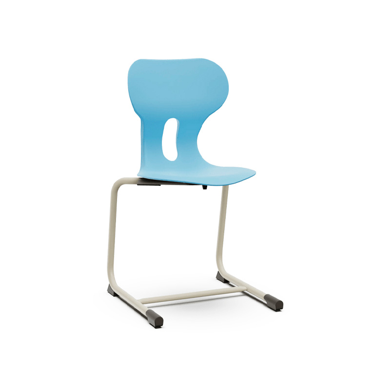 Este modelo de Silla escolar Lia Cantilever con respaldo curvado para un confort óptimo. Fabricada en polipropileno reciclado con estructura metálica de patín en color warm gray. Incorpora un agujero en la parte trasera del respaldo para colgar la mochila, facilitando el orden en el aula.