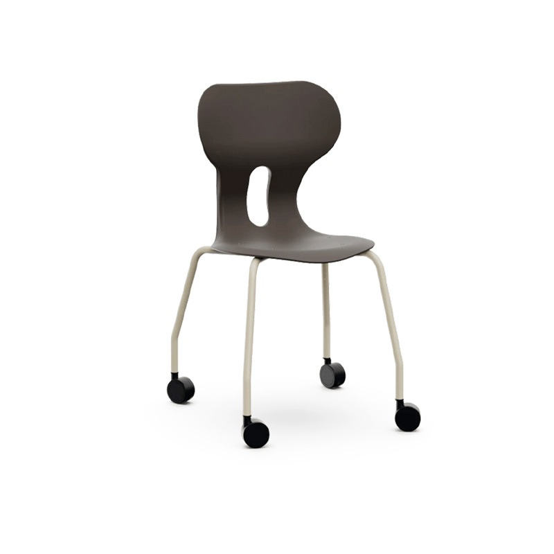 Este modelo de Silla escolar Lia Castors con respaldo curvado para un confort óptimo. Fabricada en polipropileno reciclado con estructura metálica de cuatro patas con ruedas en color warm gray. Incorpora un agujero en la parte trasera del respaldo para colgar la mochila, facilitando el orden en el aula.