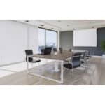 Este tipo de mesa permite crear espacios abiertos y muy ligeros, con todo tipo de complementos , son muebles de oficina fuertes y duraderos de líneas rectas.