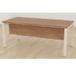 Mesa de oficina con patas metálicas y faldón de melamina.