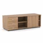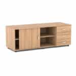 Mueble bajo 3 cajones puerta corredera y estantes ofrece un amplio abanico de posibilidades de configuración, aportando así, infinidad de soluciones de almacenaje y archivo.