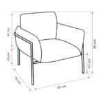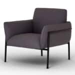 Sillón Tori1 tapizado y acolchado con estructura de madera. Patas de estructura tubular metálica