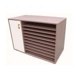 - Mueble cartulinero con 10 huecos y 3 estantes.