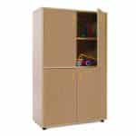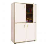 Este modelo de Armario medio 4 puertas, forma parte de nuestro catálogo de mobiliario escolar infantil. El cual está indicado para clases de Primaria.
