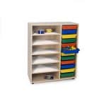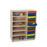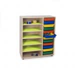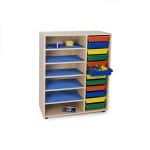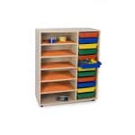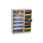 Este modelo de Gavetero estantería intermedio, forma parte de nuestro catálogo de mobiliario escolar infantil. El cual está indicado para clases de Primaria.