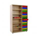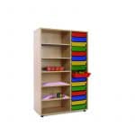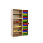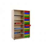 Este modelo de Gavetero estantería medio, forma parte de nuestro catálogo de mobiliario escolar infantil. El cual está indicado para clases de Primaria.