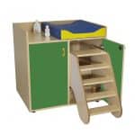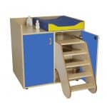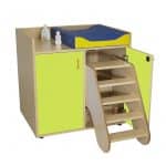 Este modelo de Mueble cambiador con escalera giratoria, forma parte de nuestro catálogo de mobiliario escolar infantil. El cual está indicado para clases de Primaria.