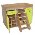 Este modelo de Mueble cambiador escalera y 3 puertas, forma parte de nuestro catálogo de mobiliario escolar infantil. El cual está indicado para clases de Primaria.