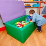 Baúl guarda juguetes con tapa. Herramienta educativa ligera y segura que enseña a los niños a través del juego a recoger. Hecho de espuma densa, ideal para el aula o el aprendizaje en casa.