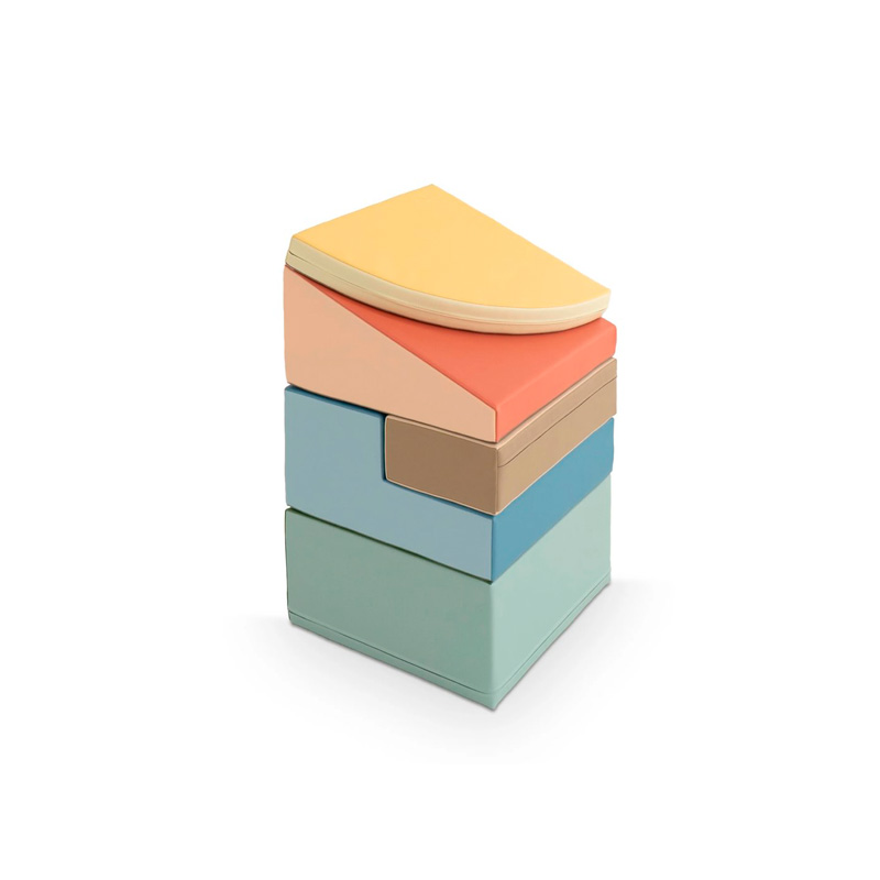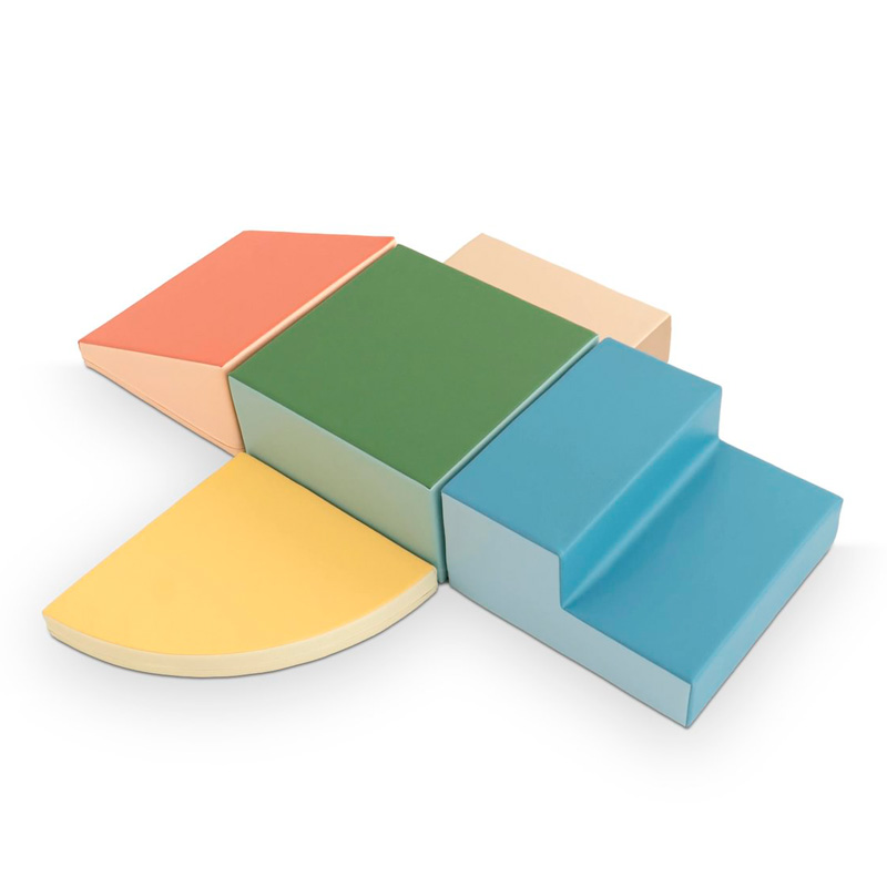 - Set de bloques de espuma compuesto por 5 piezas versátiles: 1 escalera, 1 medialuna, 1 cuadrado, 1 rectángulo y 1 tobogán.