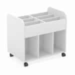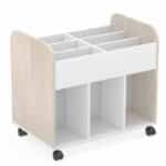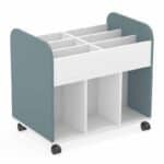 Este modelo de carro librero Dan 551, forma parte de nuestro catálogo de mobiliario escolar. El cual, es ideal para equipar clases de aprendizaje cooperativo, al igual que aulas tradicionales y bibliotecas.