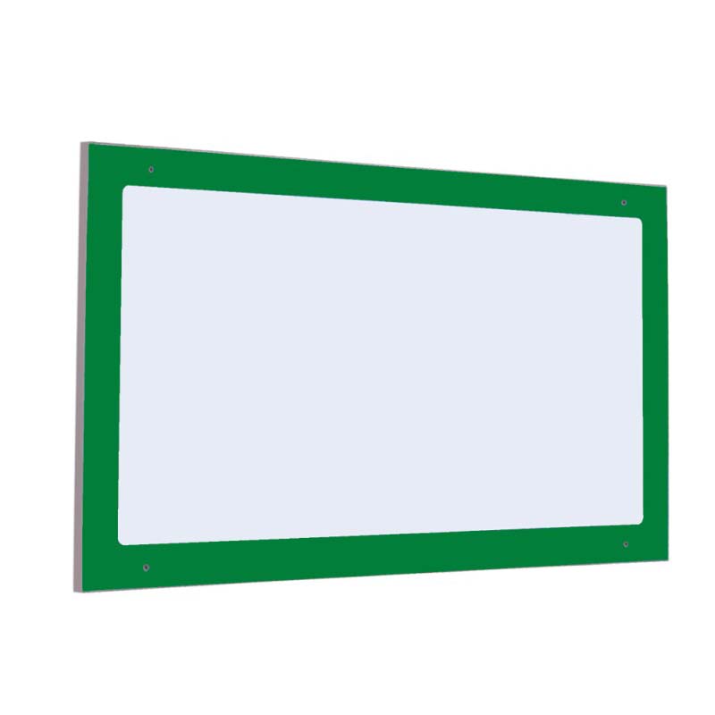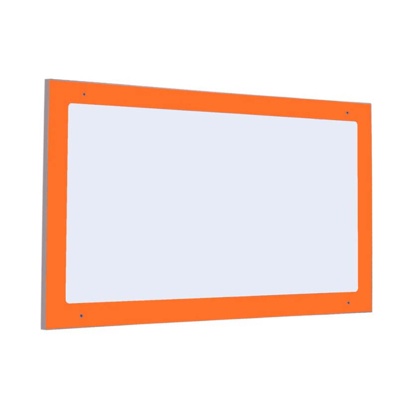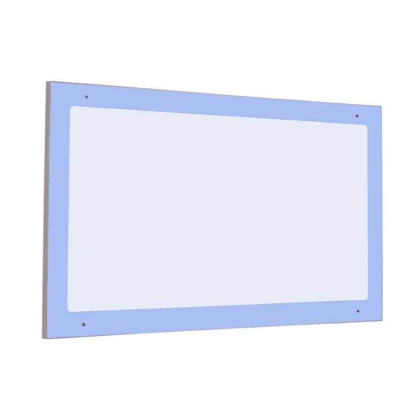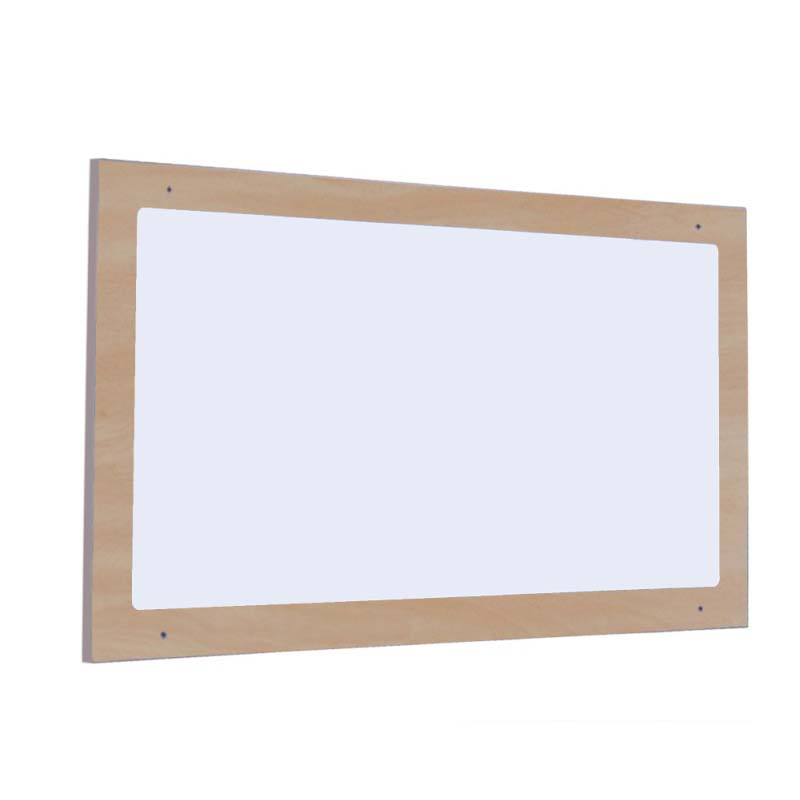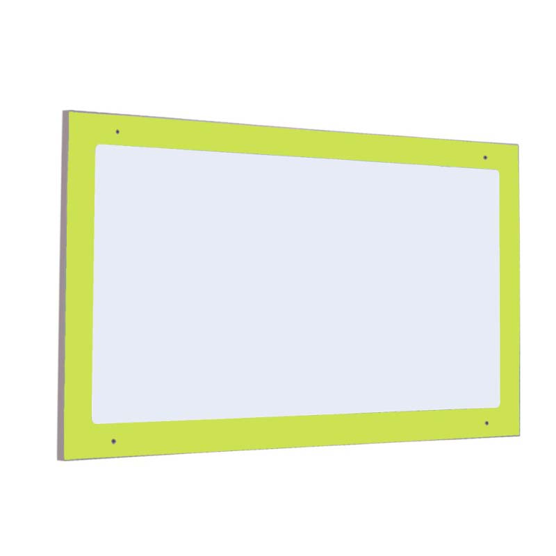Espejo embutido de identidad irrompible de poliestireno sobre tablero bilaminado de 19mm de grosor y cantos en PVC de 2mm.El cual está indicado para clases de Primaria.