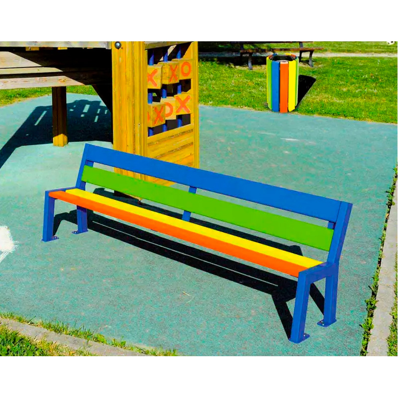 Este modelo de banco Silaos junior, forma parte de nuestro catálogo de mobiliario urbano para centros escolares, colegios, parques infantiles, ayuntamientos, comunidades de vecinos, polideportivos…