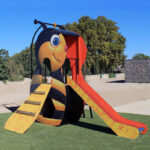 Este modelo de juego de exterior Abeja serie bichos, forma parte de nuestro catálogo de mobiliario urbano para centros escolares, institutos, colegios, universidades, parques infantiles, ayuntamientos, comunidades de vecinos, polideportivos…