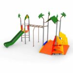 - Juego de 2 torres, una cuadrada y otra triangular, con acceso y salida a través de rampas lisas, texturizadas o pequeños saltos, con elementos interactivos, así como escalones y bases para jugar en grupo. Juego lleno de colorido y decorado con palmeras. Destaca el uso de aluminio extruido para la estructura principal y de acero galvanizado para piezas de unión y embellecedores.