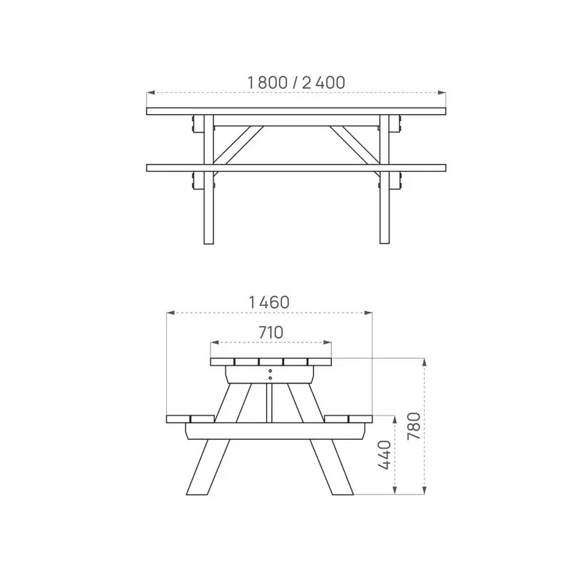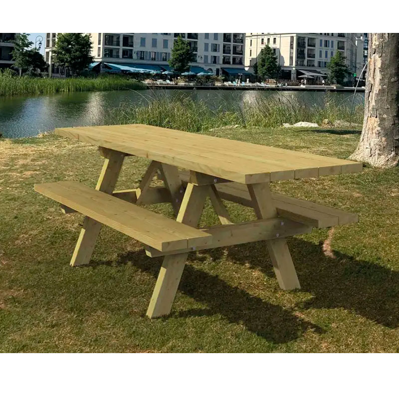Mesa Picnic con listones de madera de pino tratada autoclave clase IV, compuesta por dos asientos y una mesa, se suministra desmontado.