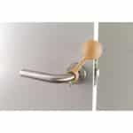 - 1. Posicionar la protección en la maneta por el lado interior de la puerta.